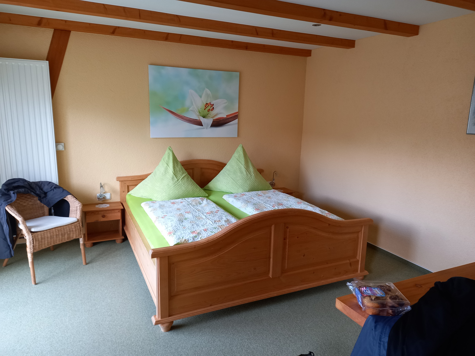Unser Zimmer in Auma ist klasse : groß, sauber, nett eingerichtet und wir können die nassen Sachen im Vorraum der Sauna zum trocknen aufhängen.