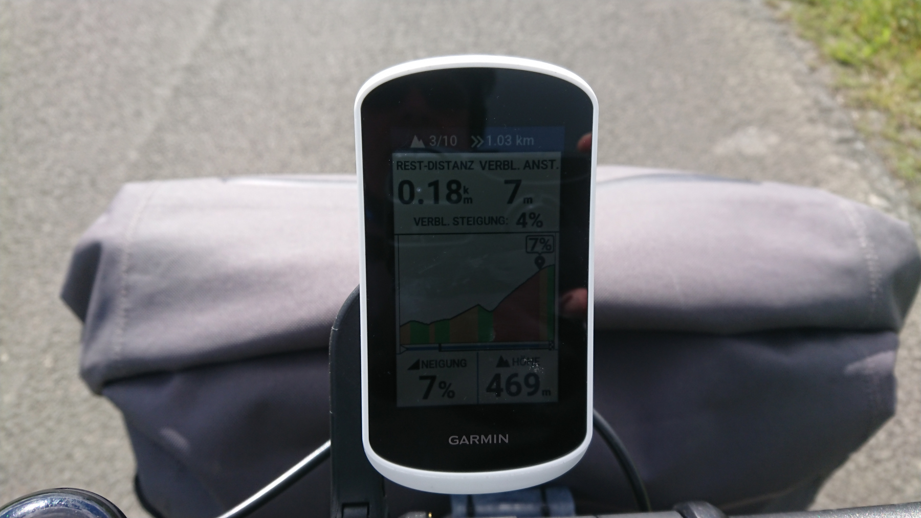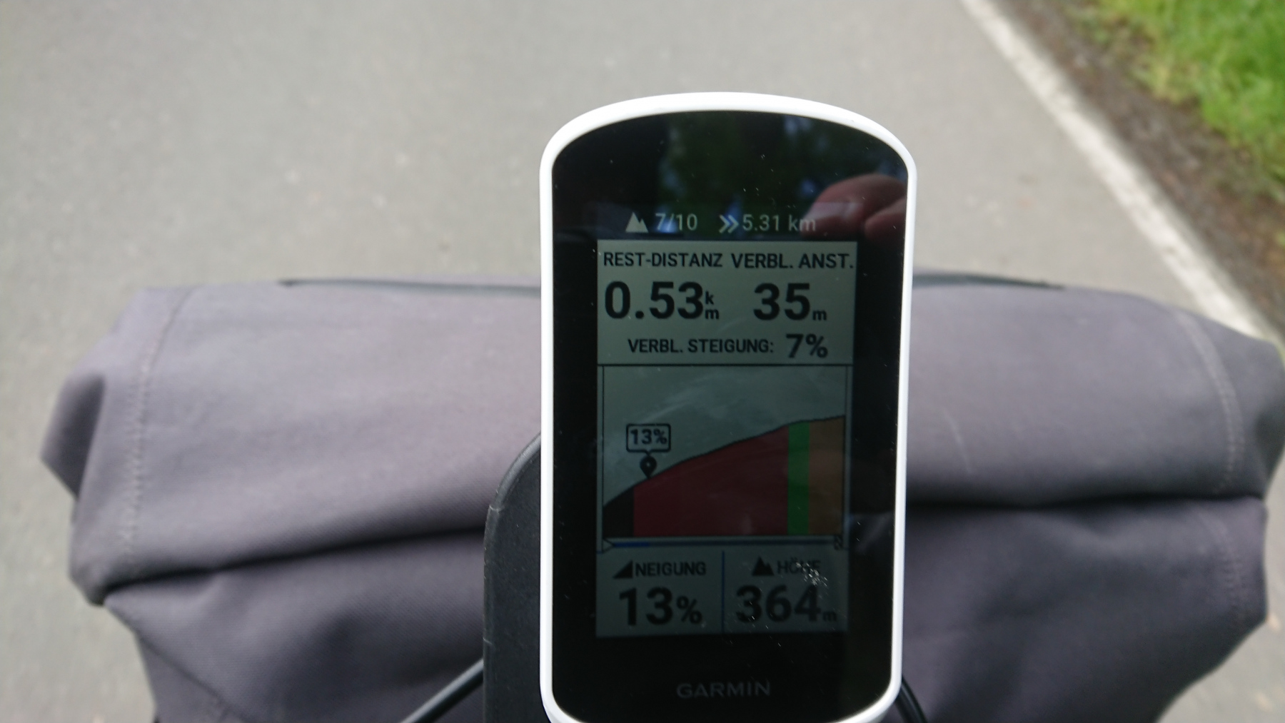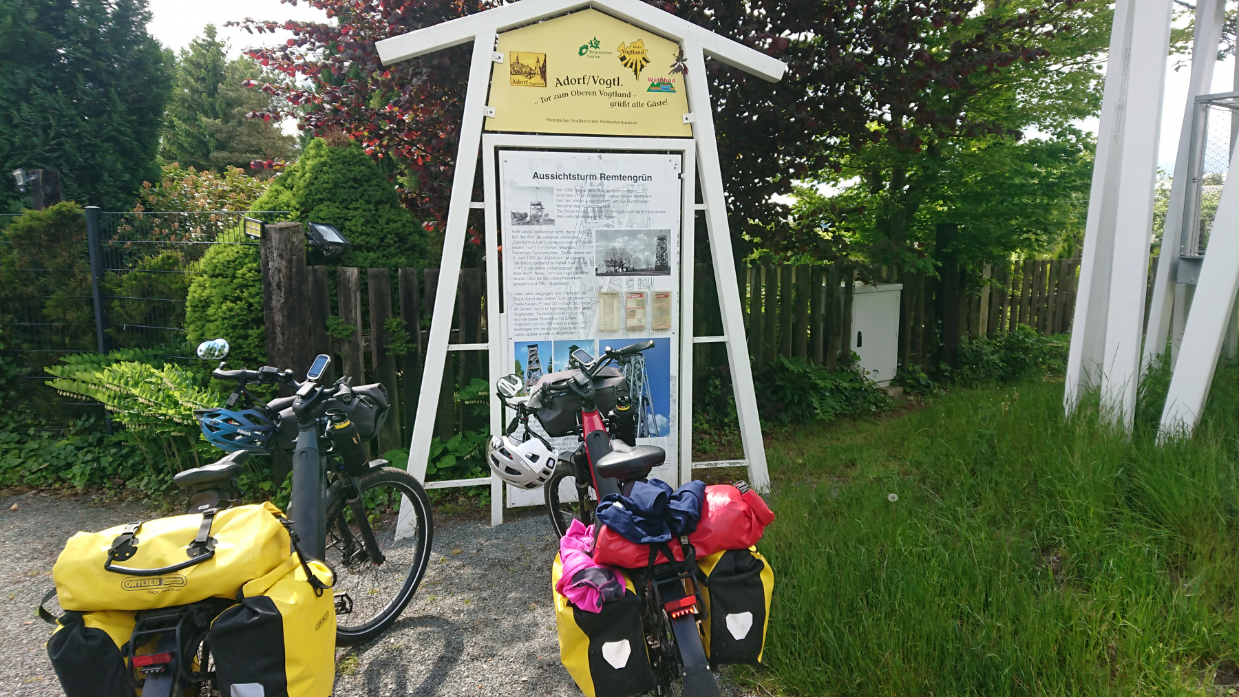 Wir wollen, bevor wir einchecken noch hinauf zum Aussichtsturm in Remtengrün. Daher zweigen wir von der Route ab, und erklimmen mit bis zu 17% die Anhöhe hinauf nach Remtengrün.