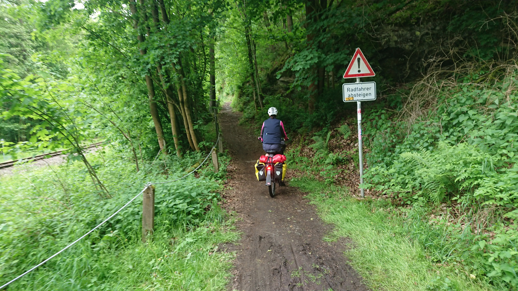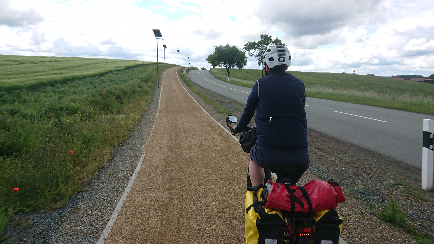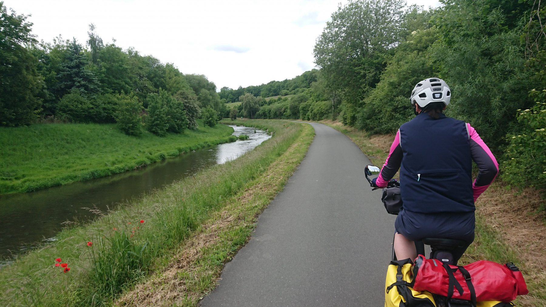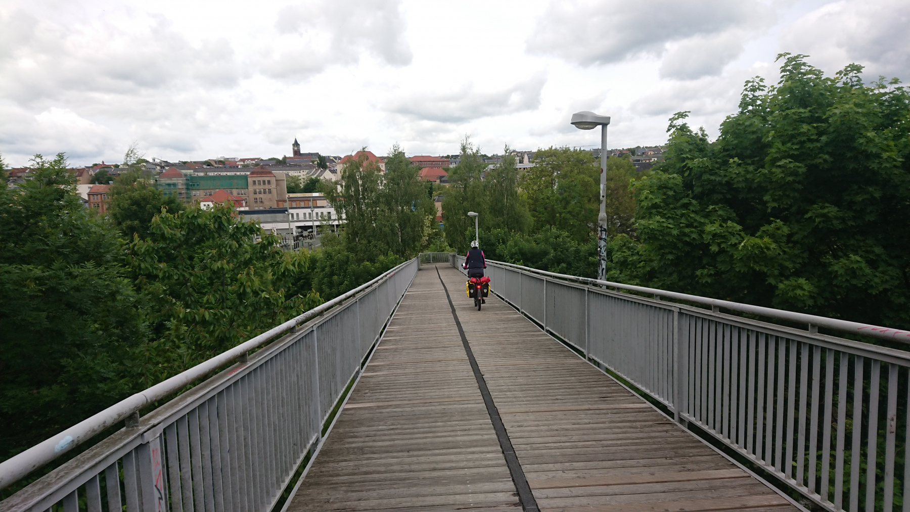 Der Radweg entlang der Weissen Elster weiss nicht so genau, was er eigentlich sein will: Mal gut ausgebauter Radweg mal Singel-Trail, der mit Gepäck auf einem Reiserad fast nicht zu meistern ist.