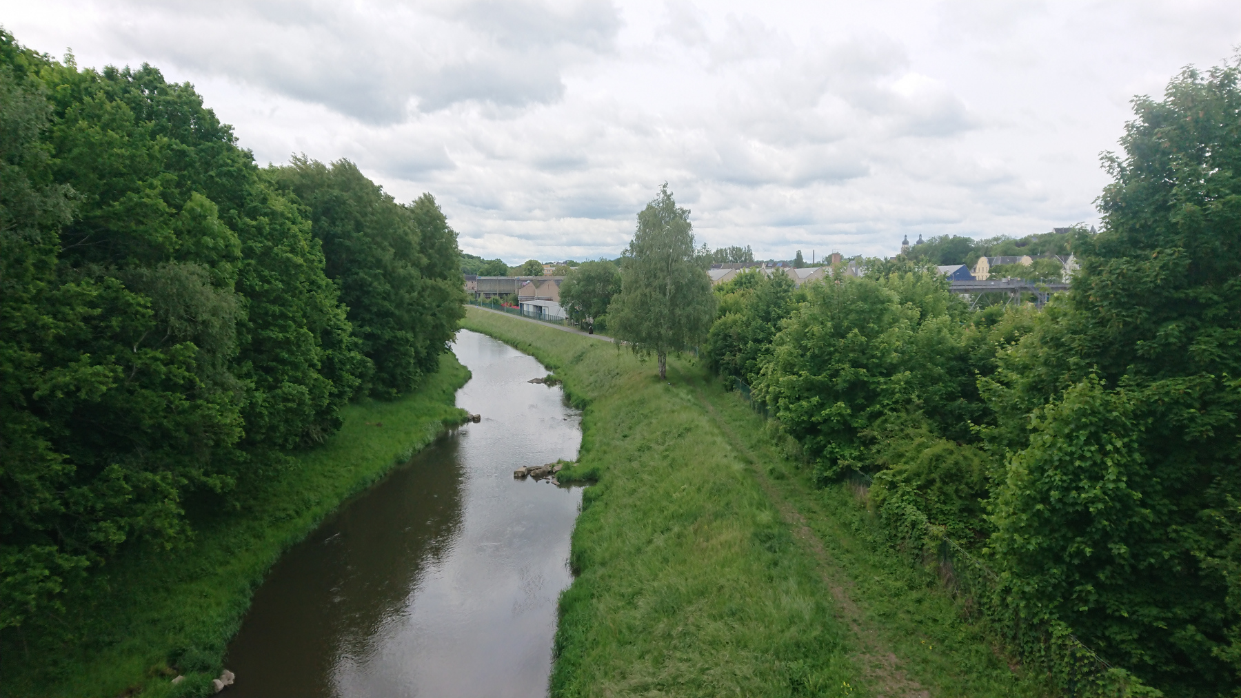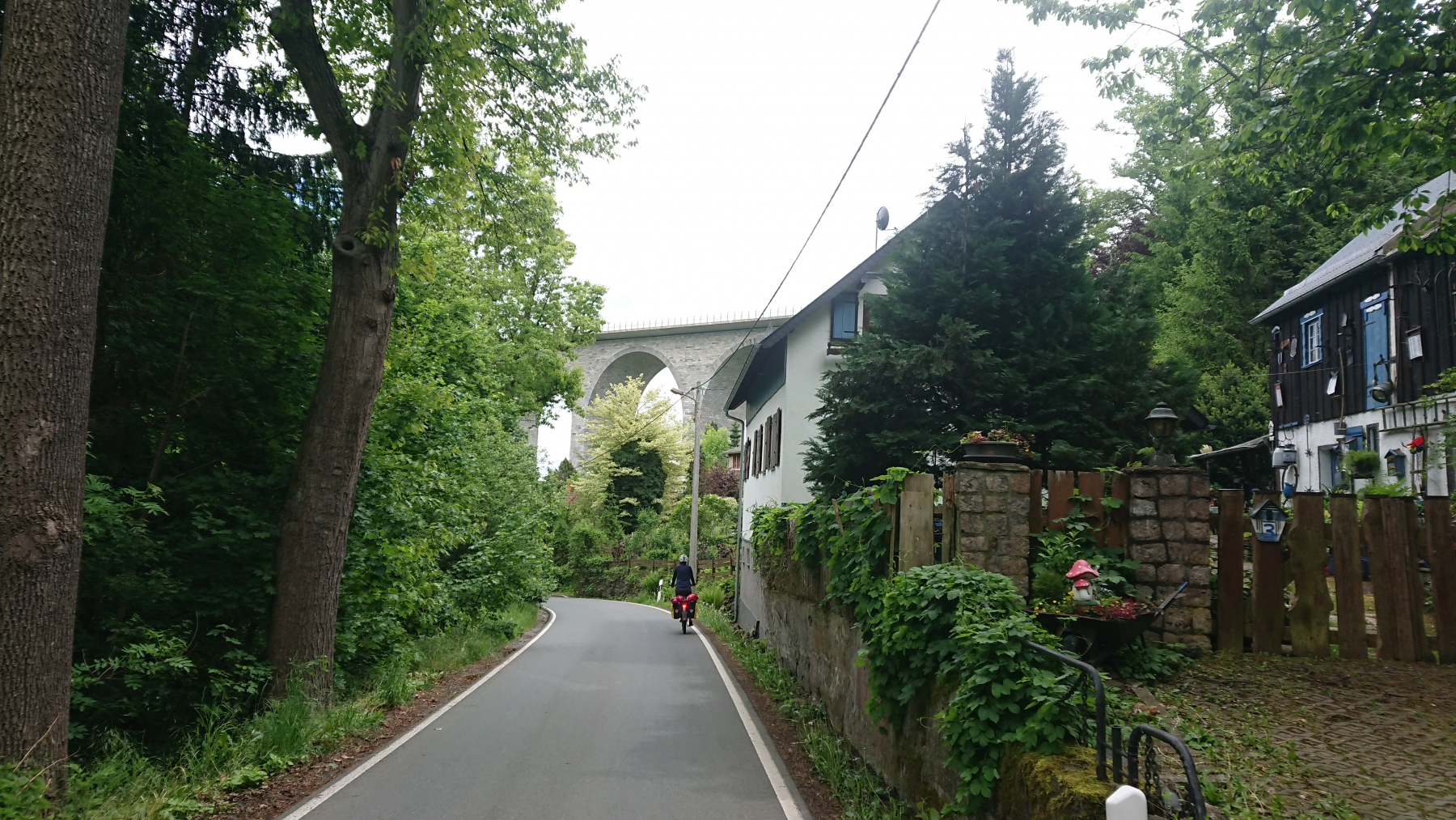 Da ist noch viel Luft nach oben. Zudem kommen uns immer wieder Gruppen auf Vatertagstour entgegen, was es an den Engstellen noch schwieriger macht. Den Radweg Weisse Elster kann man im Bereich von Plauen nur eingeschränkt empfehlen.