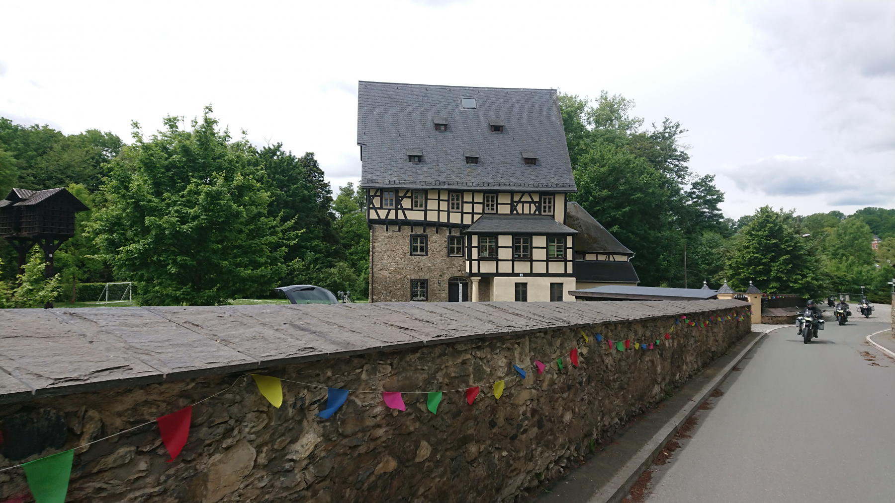 Eigentlich hatten wir noch einen Abstecher an den Pirk-Stausee geplant, deuten aber die Hinweise auf dem Navi falsch und fahren nicht zur Staumauer. Das merken wir aber erst viel später und zurückfahren wollen wir dann nicht. Also geht es weiter, rund 30 km und ein kräftiger Hügel trennen uns noch vom heutigen Ziel in Adorf.