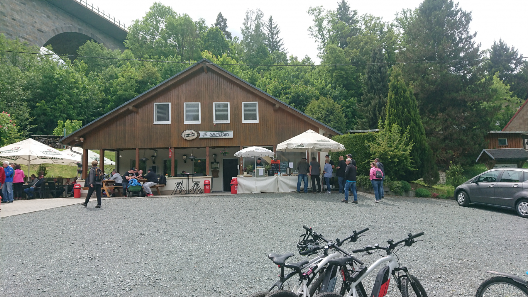 Mittagspause für uns ist heute Judit’s Brückenstübl direkt unter der Talbrücke der A72.