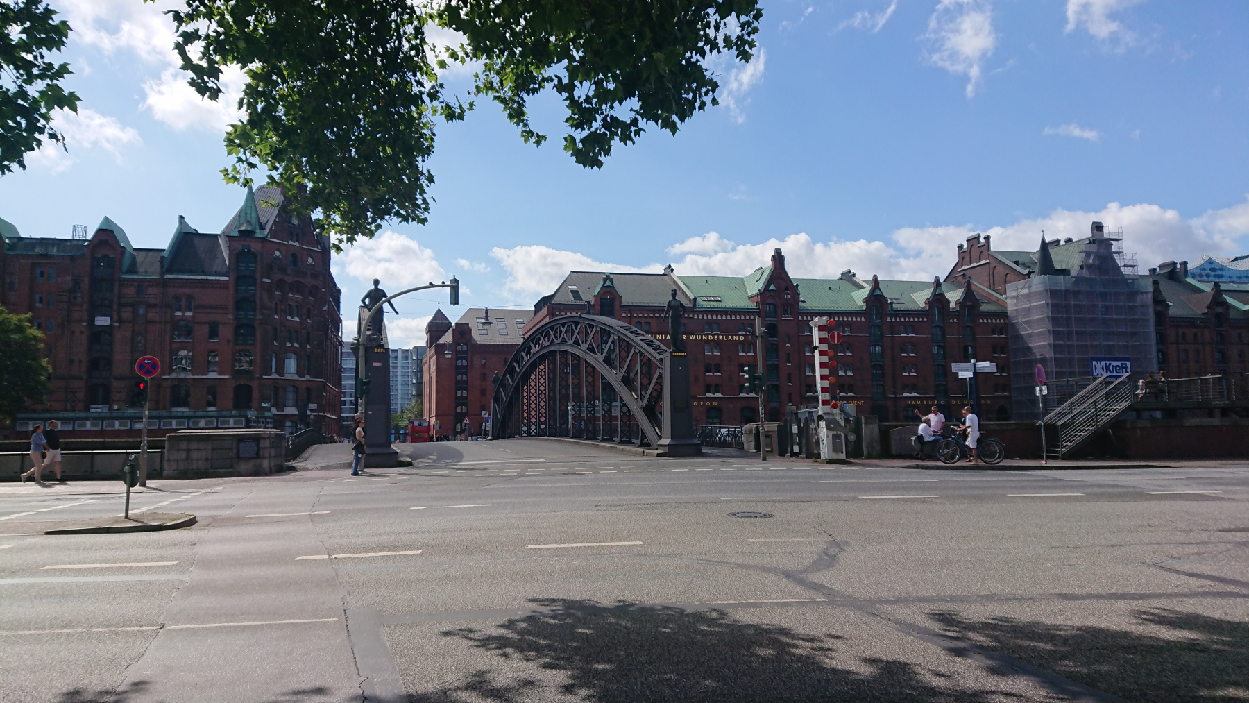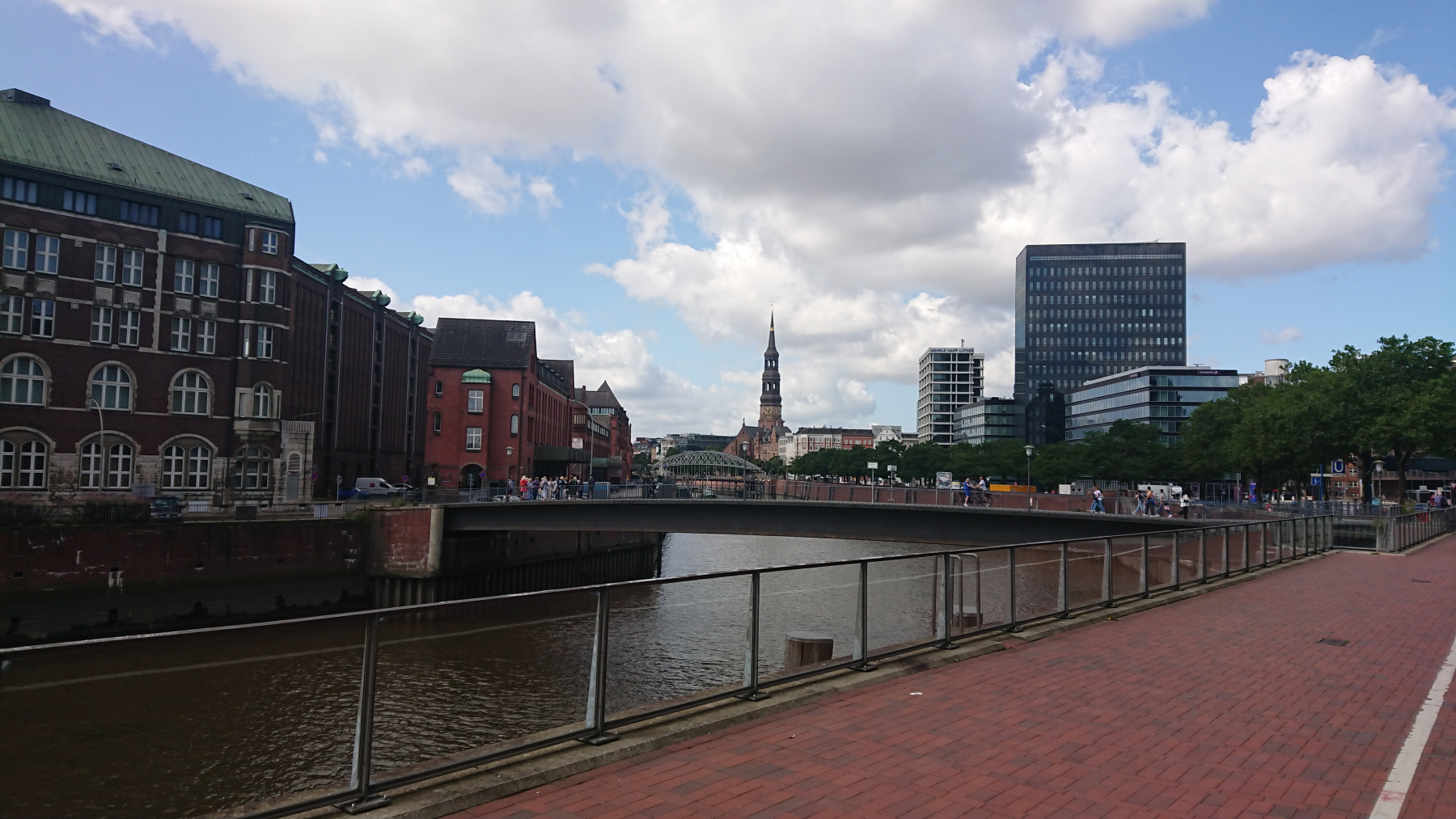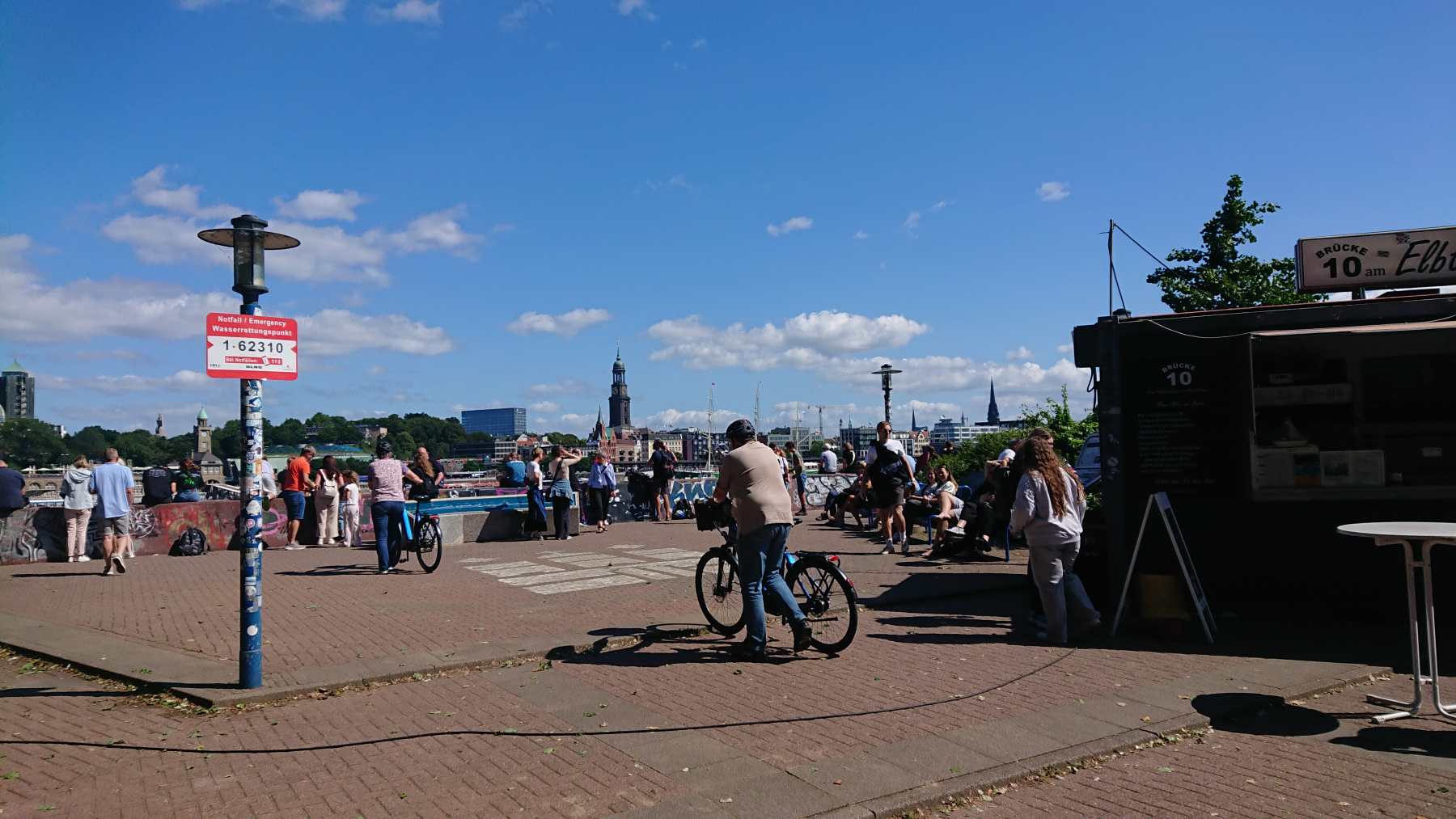 Und dann sind wir richtig im Hamburger Stadtgebiet angekommen. Elphi und Übersehbrücke umfahren wir durch das Portogiesenviertel und kommen an den Landungsbrücken wieder an die Elbe. Nur noch ein Katzensprung bis zu alten Elbtunnel.